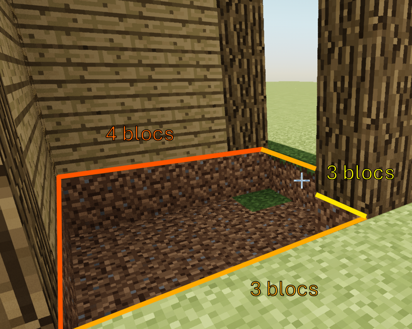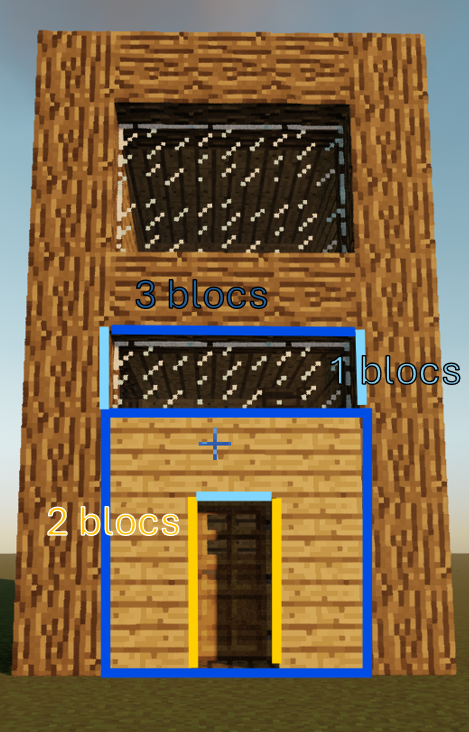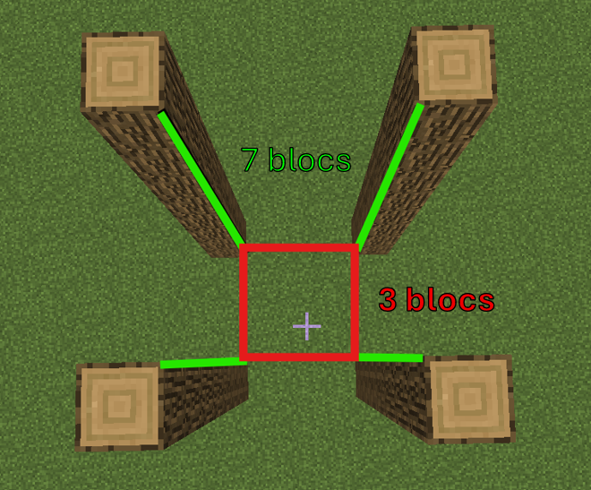 pausé 4 colonne de 7 block de hauteur en buche espacé de 3 blocs